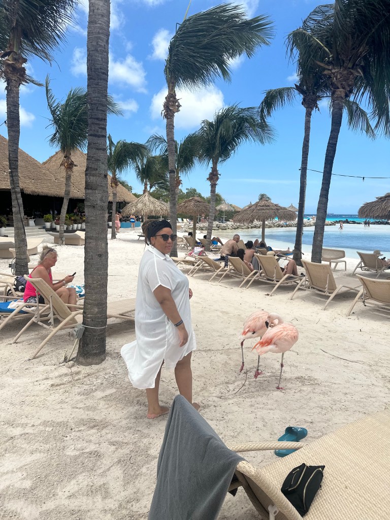 When I first began researching places to stay in Aruba, it was important to find somewhere that had beach access. But not just any beach, the flamingo beach. So that’s how we ended up booking this first hotel. It’s the only one that has access to the private flamingo island. You may think it was a stretch to book a hotel just to have access to a certain beach. But this beach is special because it’s the only one that has flamingos walking around.